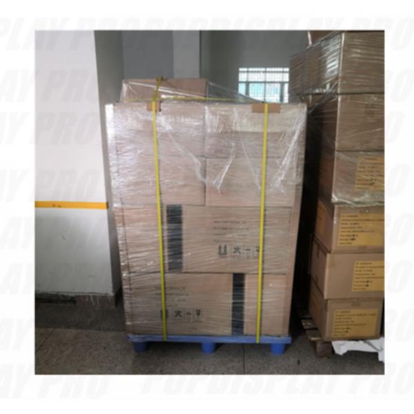 Units packed in carton and pallitized, shrink wapped film to keep goods dry: